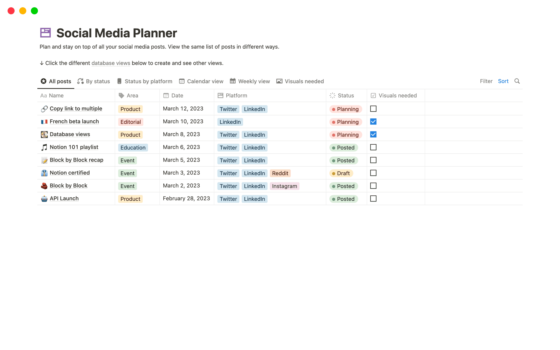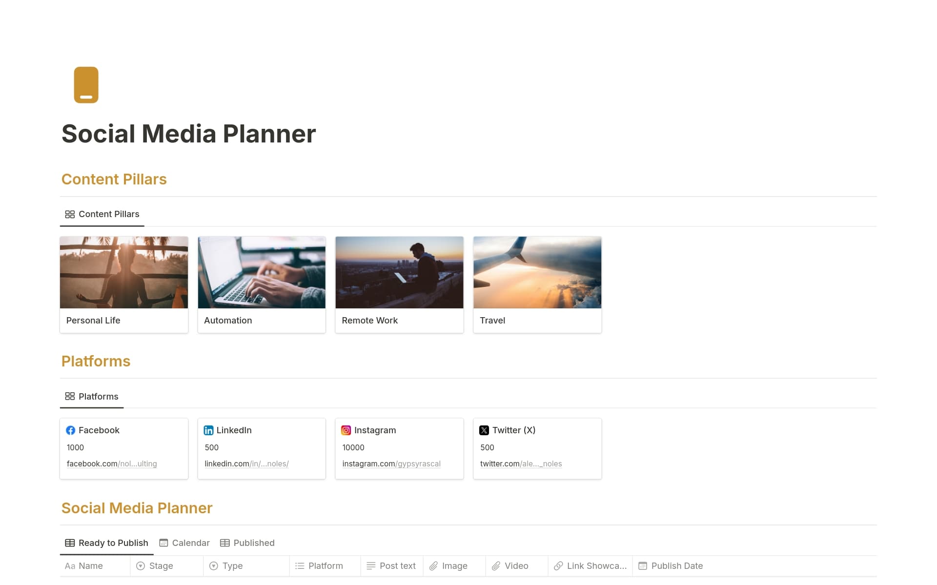 Collection of content calendar templates